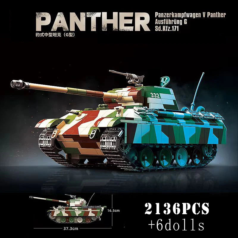 Dieses Set mit 2136 Bausteinen ermöglicht es, den Panther in beeindruckender Größe (37,3 cm Länge, 16,5 cm Höhe) detailgetreu nachzubauen. Dank seiner authentischen Tarnbemalung aus Klemmbausteinen wirkt das Modell noch realistischer und hebt sich in jeder Sammlung deutlich ab.
